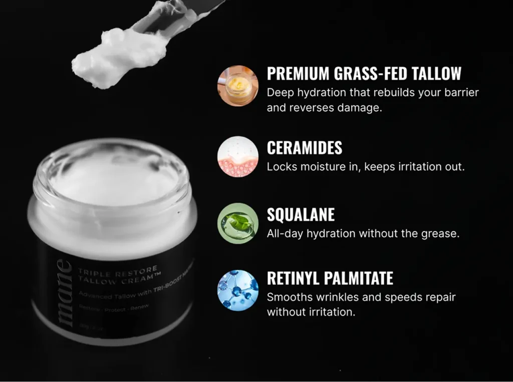 Tallow exploded in 2025 as the ingredient that finally rebuilds men's skin barriers. But, most formulas smell terrible and feel like rubbing bacon grease on your face. Triple Restore solved both problems—and then went six steps further.